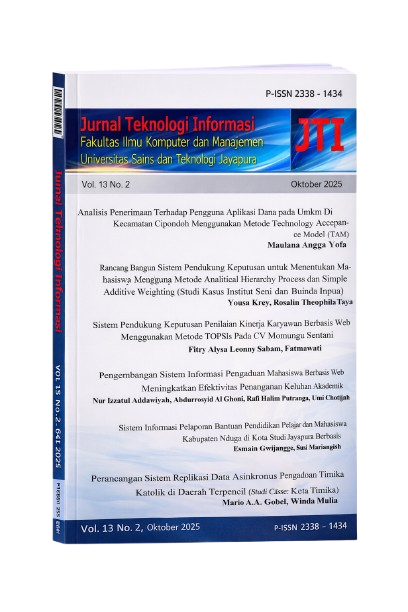 Jurnal Teknologi Informasi merupakan publikasi ilmiah yang diterbitkan oleh Fakultas Ilmu Komputer dan Manajemen, Universitas Sains dan Teknologi Jayapura (USTJ). Jurnal ini bertujuan untuk memfasilitasi …